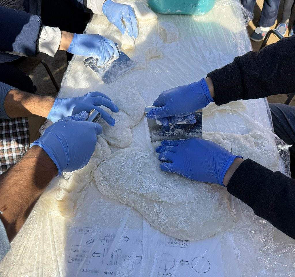 つきたてのお餅はよく伸び、子どもたちからも「めっちゃ大きい!」「なが~くなってる!」と興味津々で見ていました。ついたお餅はきなこ餅にしてみんなで美味しくいただきました★