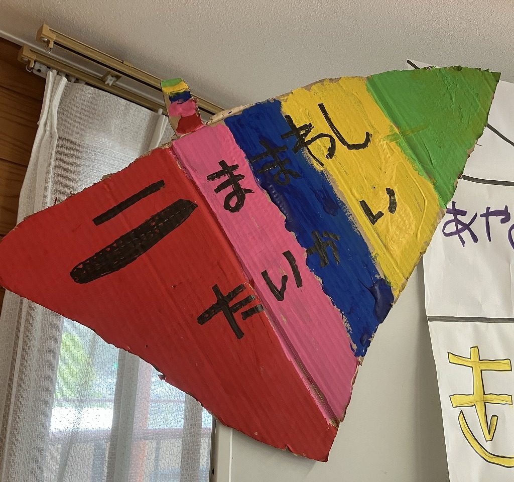 こまは紐を巻くことから難しく、はじめは取り組む子どもの数が少なかったです。しかし、「回せるで!」と得意気な友だちの姿が刺激にもなり、練習を重ねる子どもが増えていきました。そして少しずつ回せるようになる子どもたちも増えだし、自信をつけるとともに楽しくチャレンジする様子が伺えました!!
