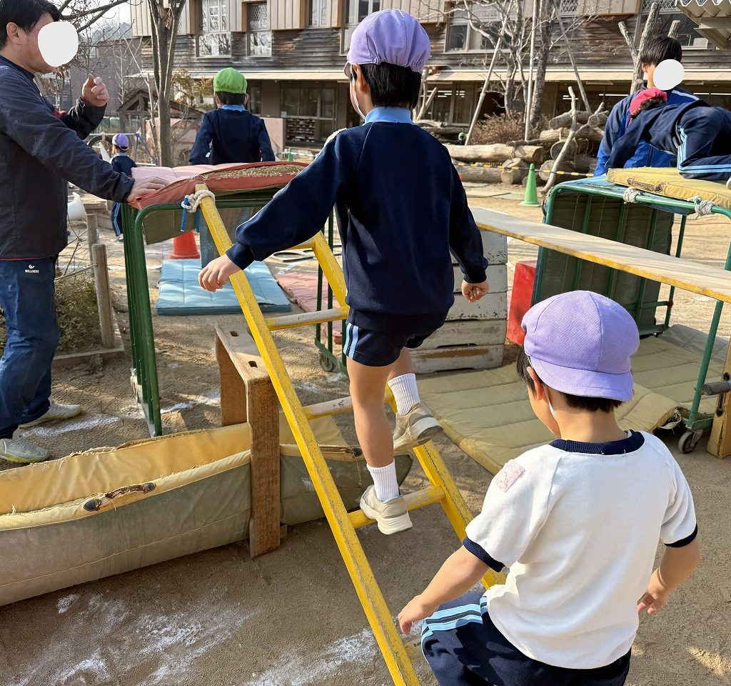 1月の3連休が過ぎてからは【はなのパレード】の練習が始まっても寒さに負けず戸外でも変わらず元気いっぱい遊んでいる子どもたち!戸外体育は参加は自由です。興味のある子どもたちはサーキットに出たり入ったりしながら楽しんで取り組んでいます★