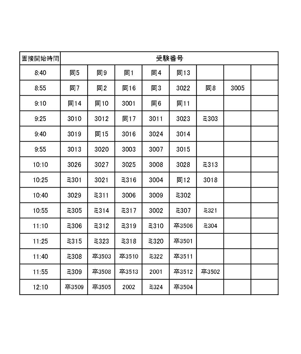 各自、受験番号を手元に時間帯をご確認ください。